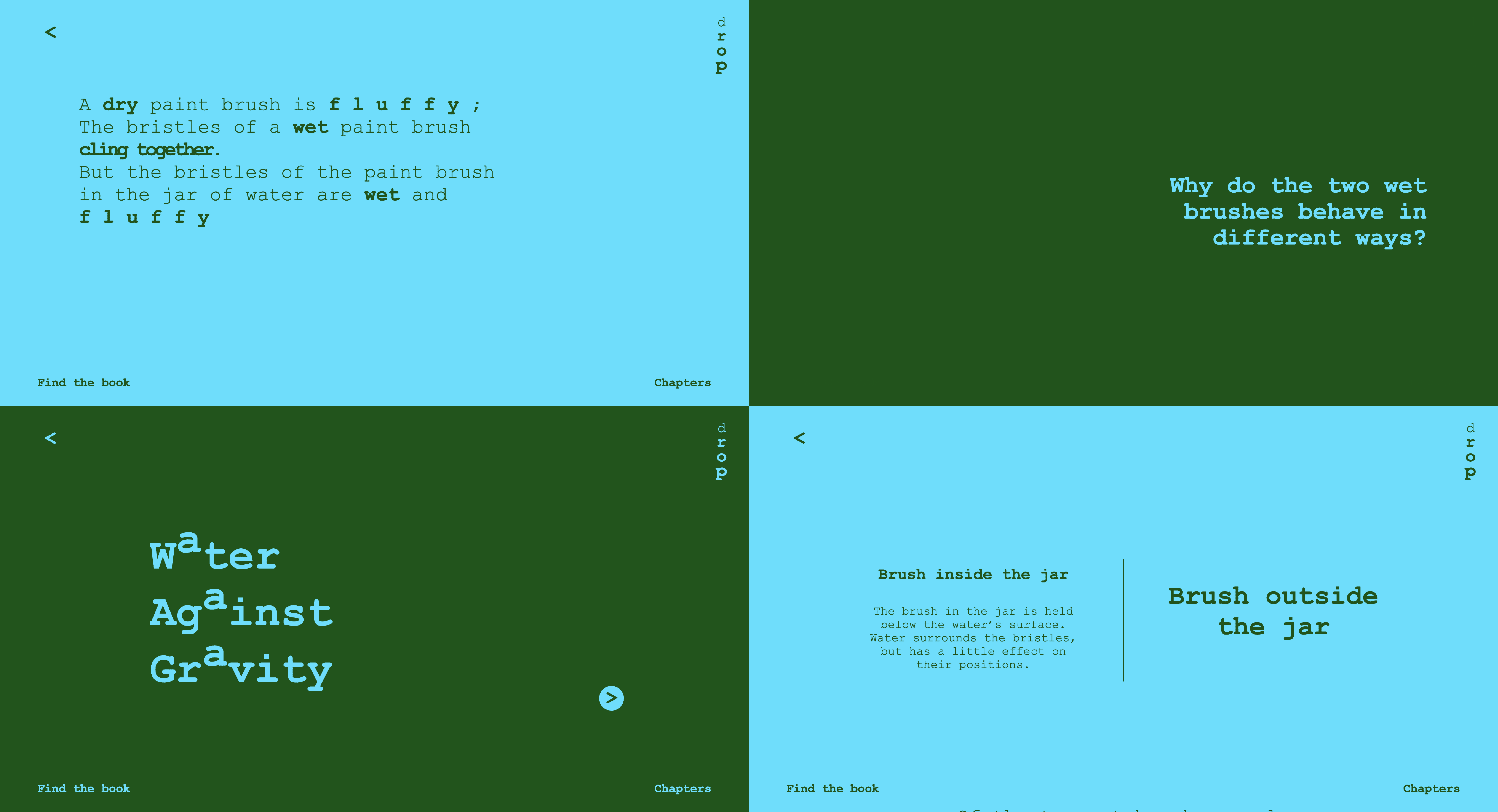 I created a web version of a kids’ photo book by Wick Walter about water. This project was one of my first experiments with Figma and translating a design into code from scratch. I explored various CSS techniques and focused on creating an interactive, playful layout that reflected the engaging nature of the book. Through this process, I experimented with interactivity, layout, and visual storytelling in a digital space.